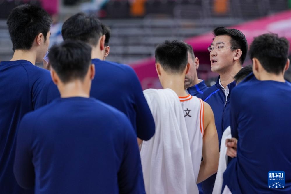 11月11日,四川队主教练王博(右二)在赛前布置战术。新华社记者 李博 摄