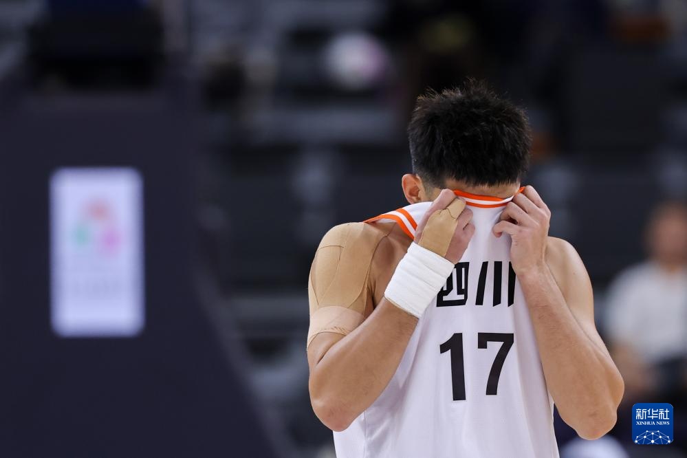 11月11日,四川队球员孙铭徽在比赛中擦汗。新华社记者 李博 摄